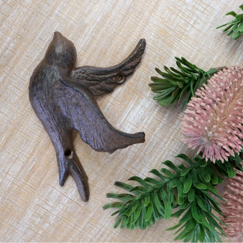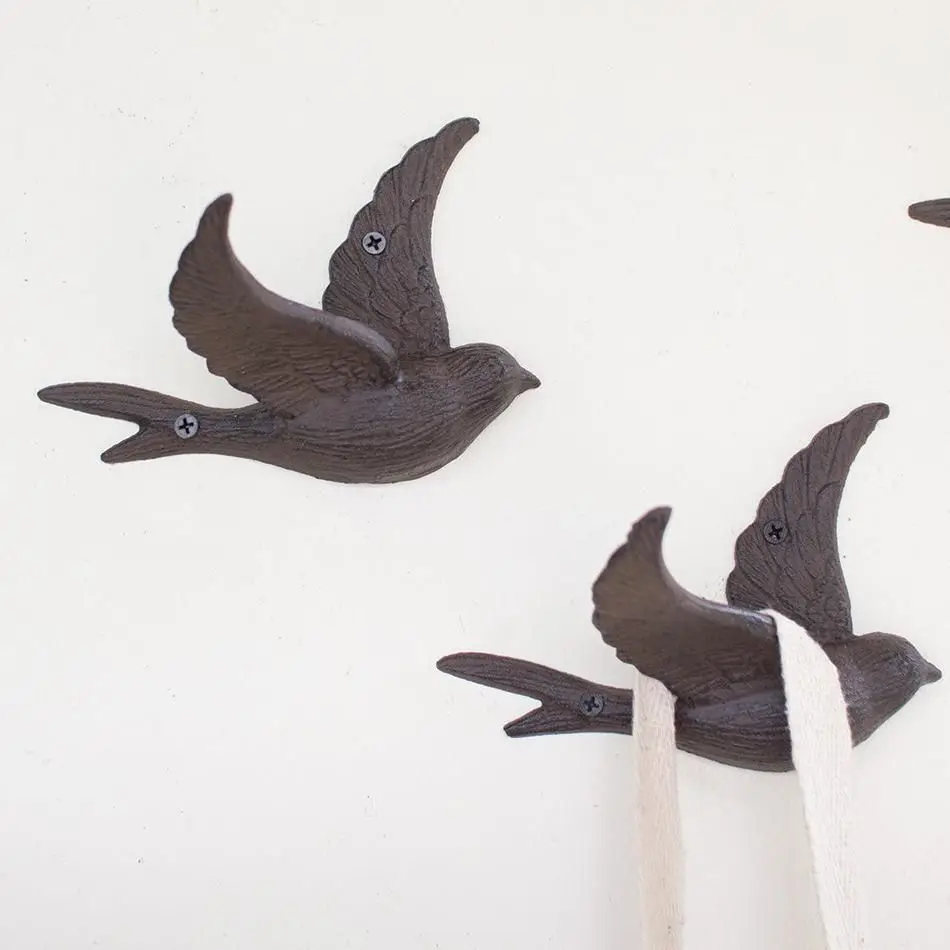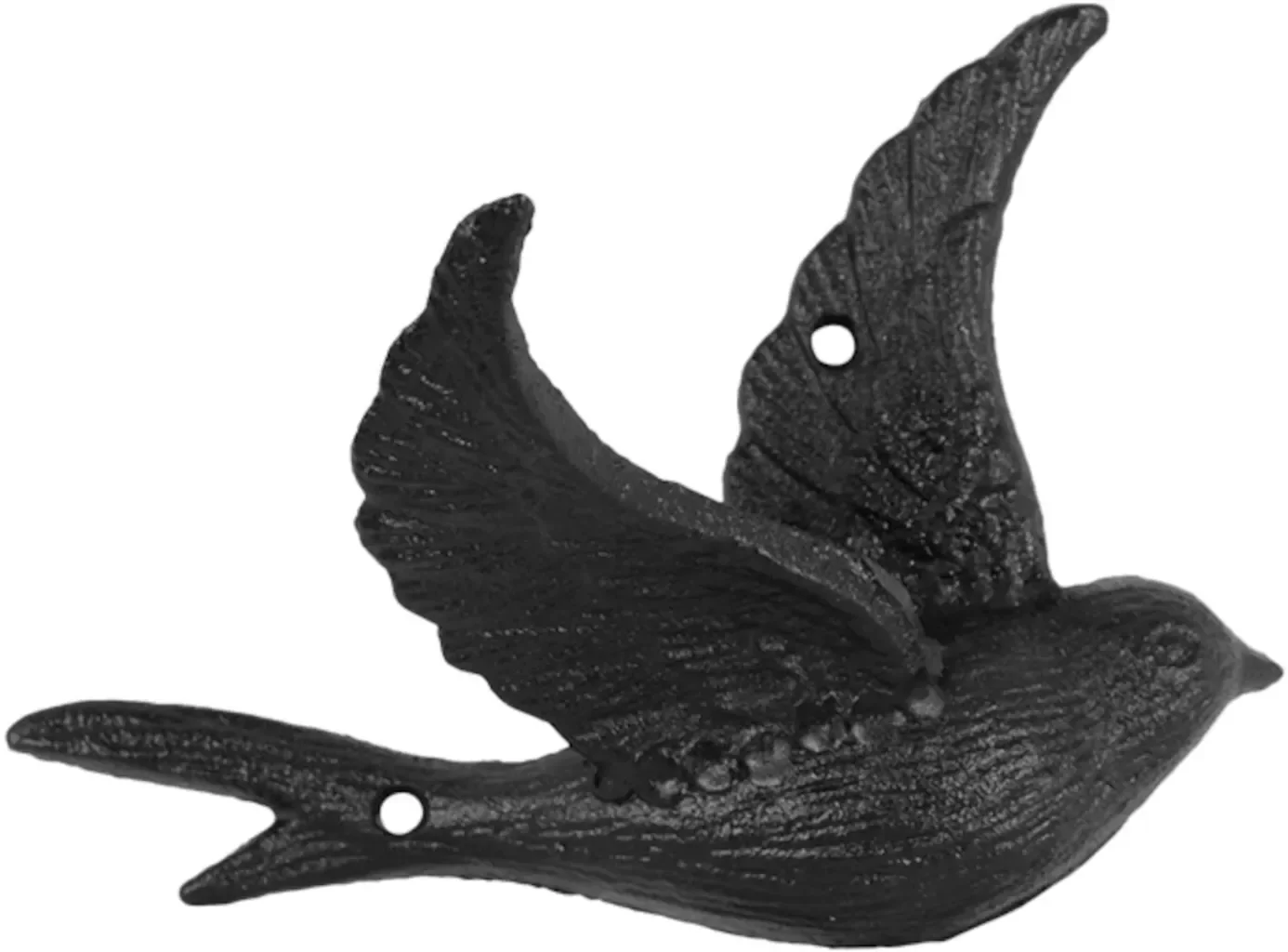 Rustic Farmhouse Bird Flying Decorative Coat Hooks Wing Hook Vintage Black Hooks for Coats Hats Sturdy Cast Iron Construction
